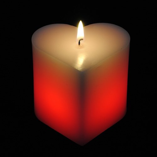 - candela a forma di cuore che quando accesa alterna diverse tonalità di colore rosso;