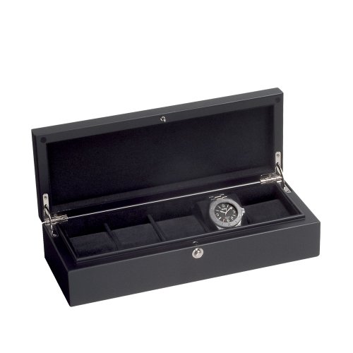 Description : La scatola orologio per cinque orologi vanta un design classico ed elegante. Il caso e verniciato nero con finitura opaca, si inserisce perfettamente in qualsiasi ambiente.