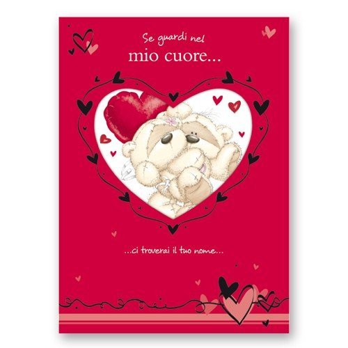 I biglietti sono illustrati con le bellissime immagini di Fizzy Moon l'orsetto più tenero che c'è "Se guardi nel mio cuore ci troverai il tuo nome........"