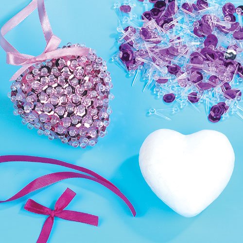 - Ogni kit è facile da montare e include un cuore in polistirolo da 55 mm, paillettes, spille da balia di plastica, nastro, fiocco e istruzioni complete.